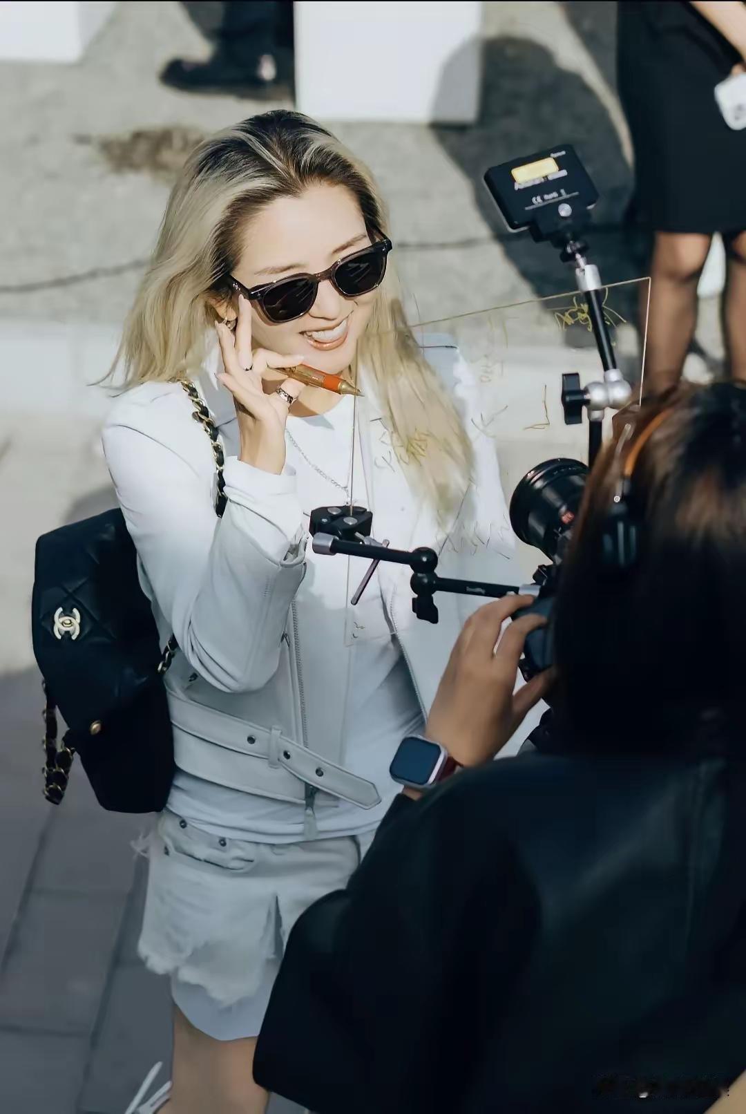 染着一头黄白色的头发,皮肤也好了很多,没有网友口中说的那么憔悴和老感了!