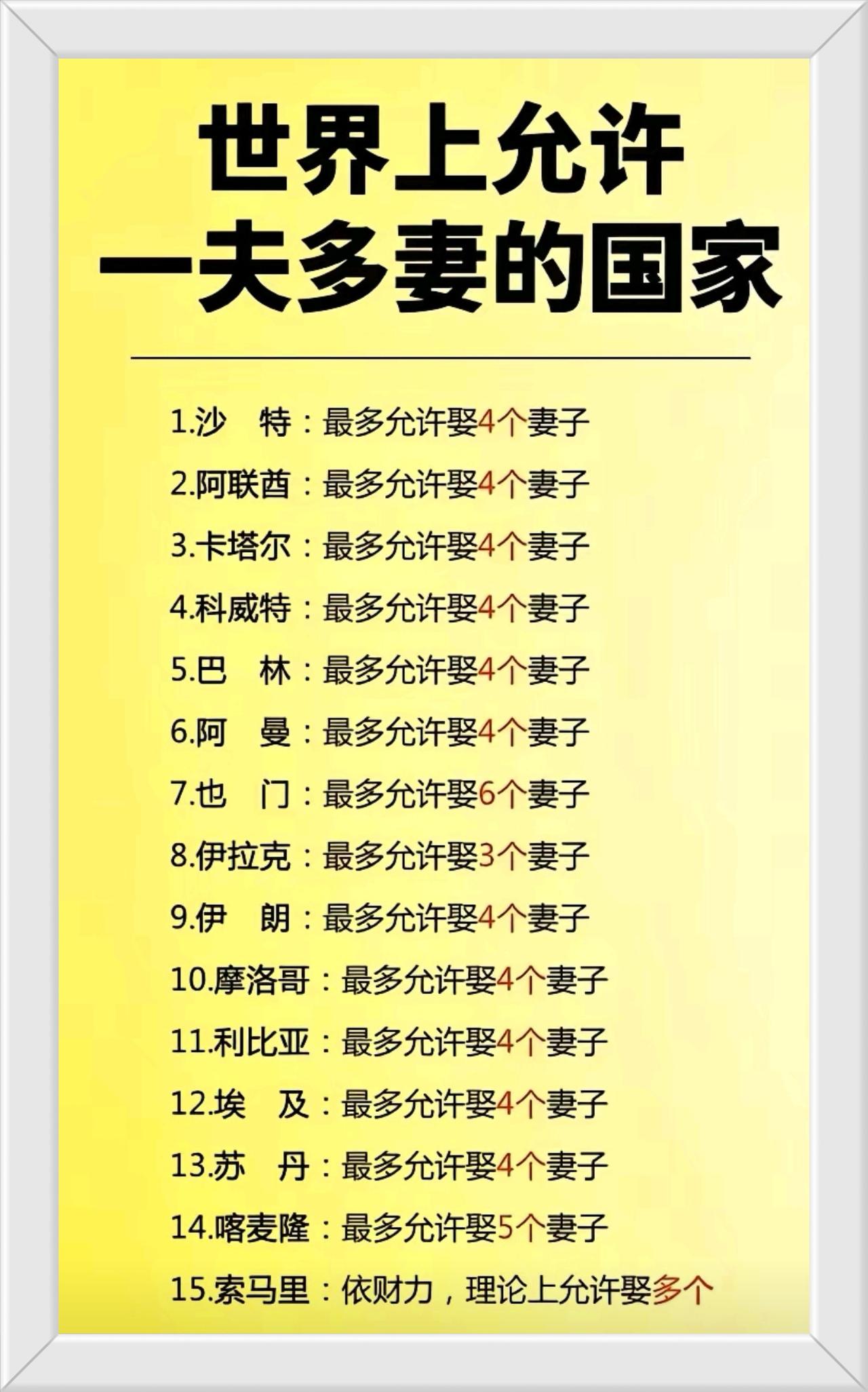 一个老婆,有时候老公面对老婆头都大了。但现在全世界有五十多个国家,允许一夫多妻制,这些人可不容易享受这样"艳福”。