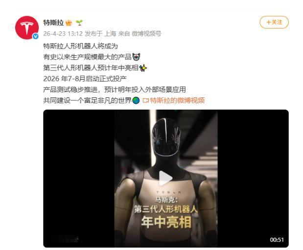 三:特斯拉:第三代人形机器人预计年中亮相2026年7-8月启动正式投产