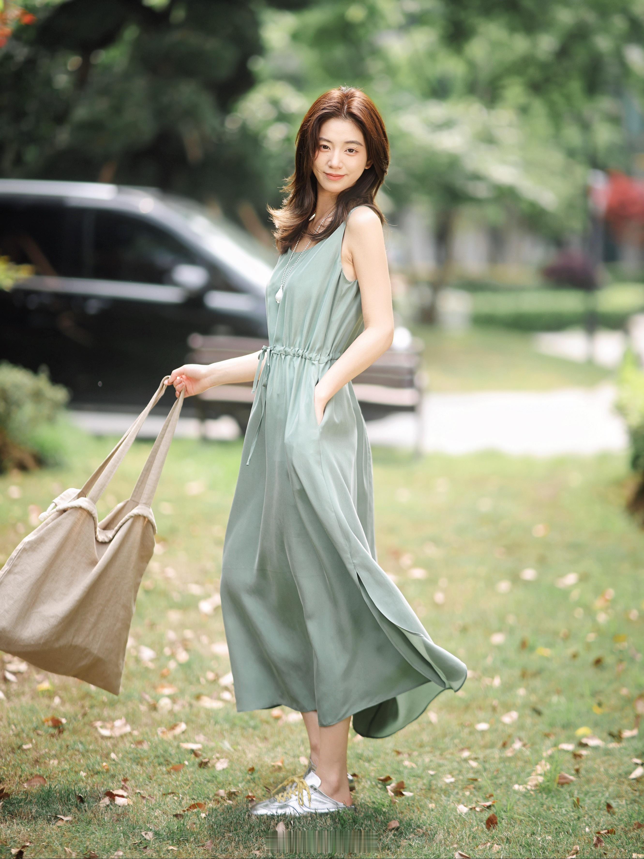是夏天的感觉~100真丝/轻盈飘逸 连衣裙还有收腰抽绳特显瘦!!