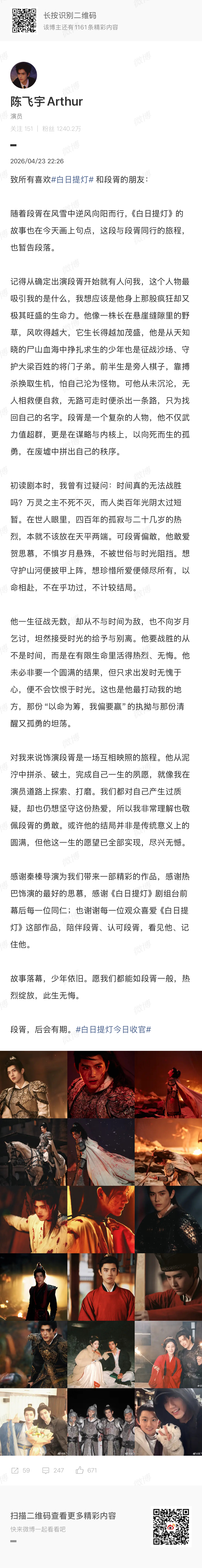 陈飞宇晒白日提灯收官长文陈飞宇晒《白日提灯》收官长文+段胥18宫格照,段胥后会有期,演员陈飞宇,我们下个角色见陈飞宇白日提灯收官小作文陈飞宇说段胥后会有期 陈飞宇