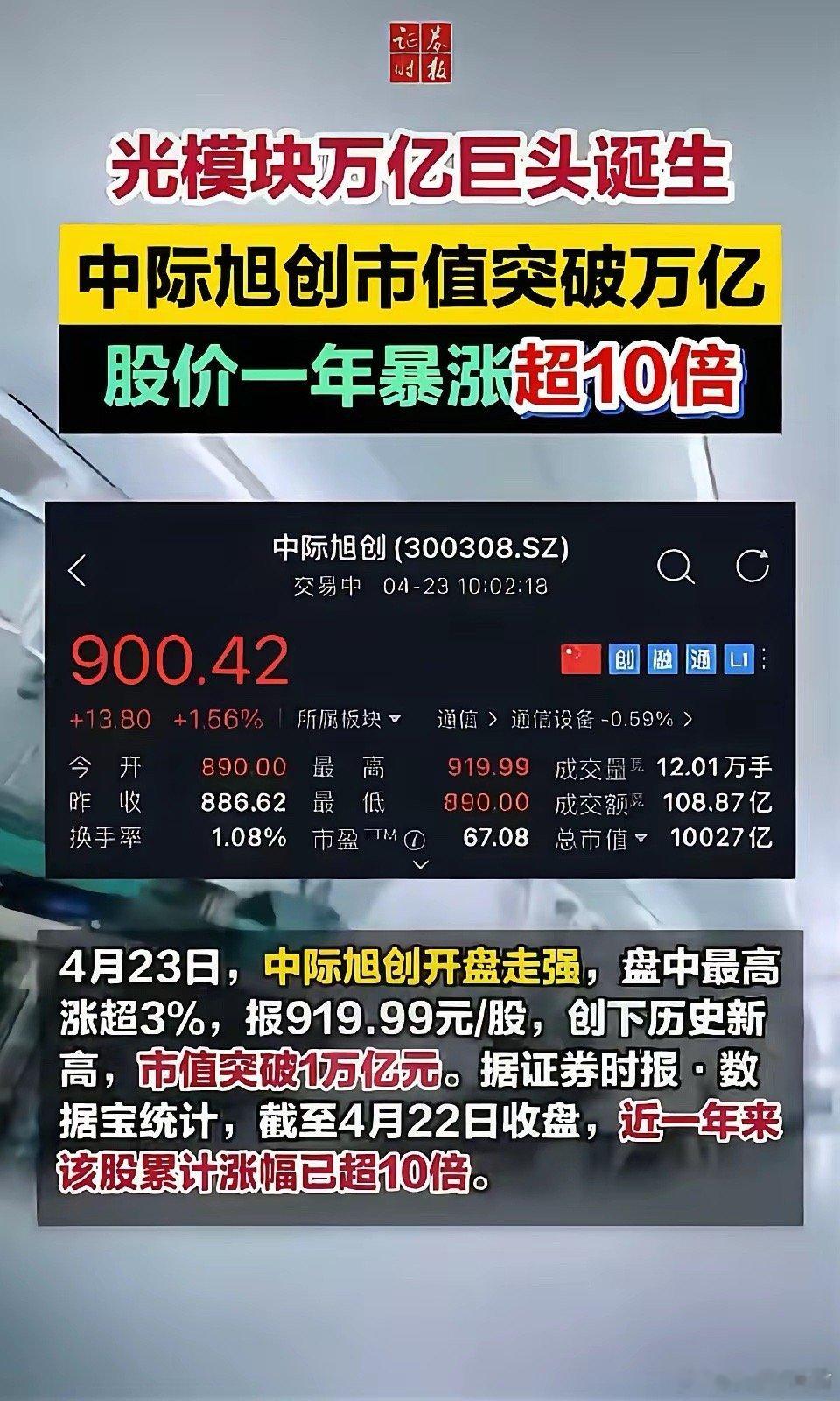 A股万亿科技巨头诞生我大A第8只万亿市值个股,与宁王、工业富联等共同构成科技与算力的龙头矩阵。身份挺独特的,大A首家万亿市值CPO(光模块)概念股。业绩也炸裂:一季度营收195亿同比几乎翻倍,净利润超57亿,单季盈利超24年全年,就问你赚不赚钱?关键人家还有技术壁垒,800G光模块全球市占率超40%,1.6T产品预计三季度批量出货,全球市占率预计占到50%以上,就问你这技术牛不牛?小结:AI算力基础设施已经进入大A万亿市值俱乐部了,东大硬科技实力的价值再次被资本认可,西降东升再添一笔。