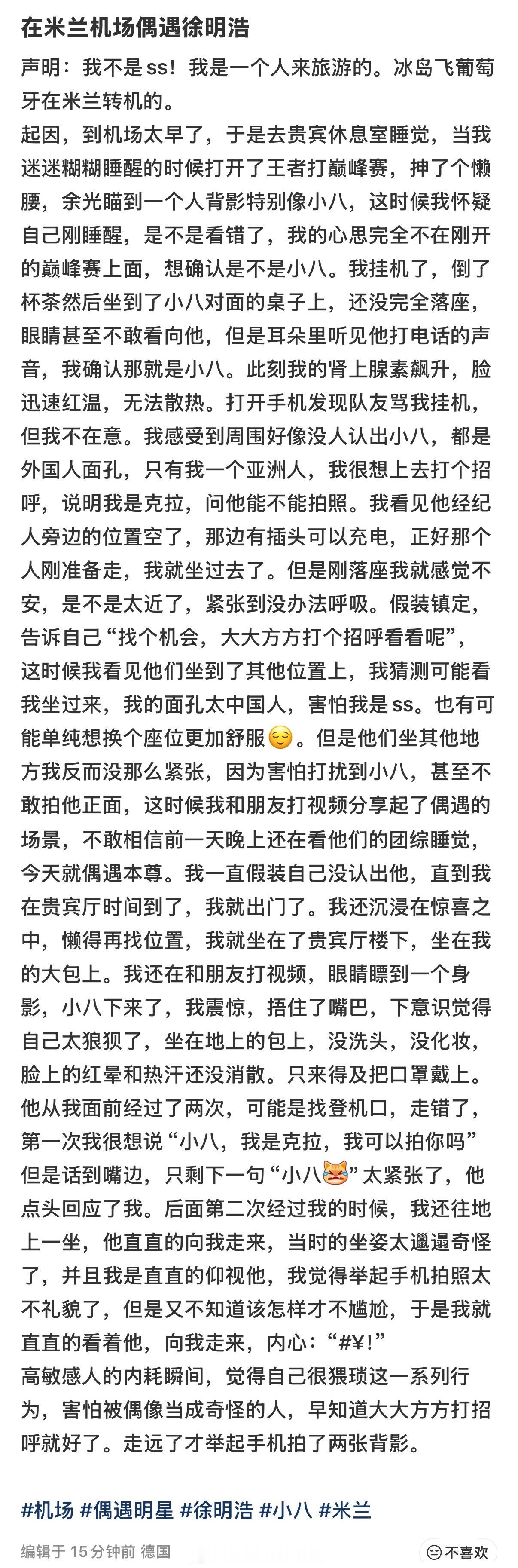 米兰机场偶遇徐明浩网友米兰机场偶遇徐明浩 网友米兰机场转机偶遇徐明浩