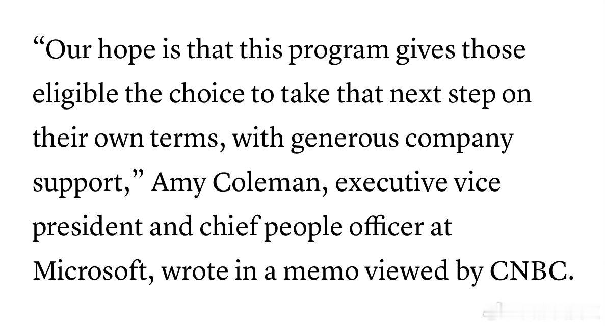 负责人形容为“让符合条件的人能自主选择下一步,公司会提供慷慨的扶持”