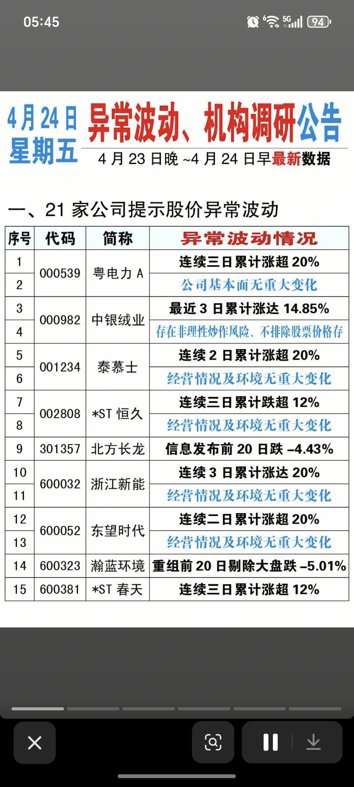 4.24周五 利空消息汇总! 退市风险警示、问询函、监管问询函、股价异动公告
