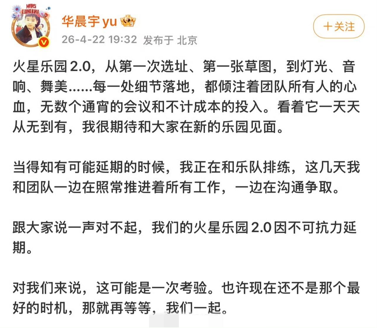 华晨宇演唱会突然延期,几个亿直接打水漂,筹备好几年真的太不容易😭