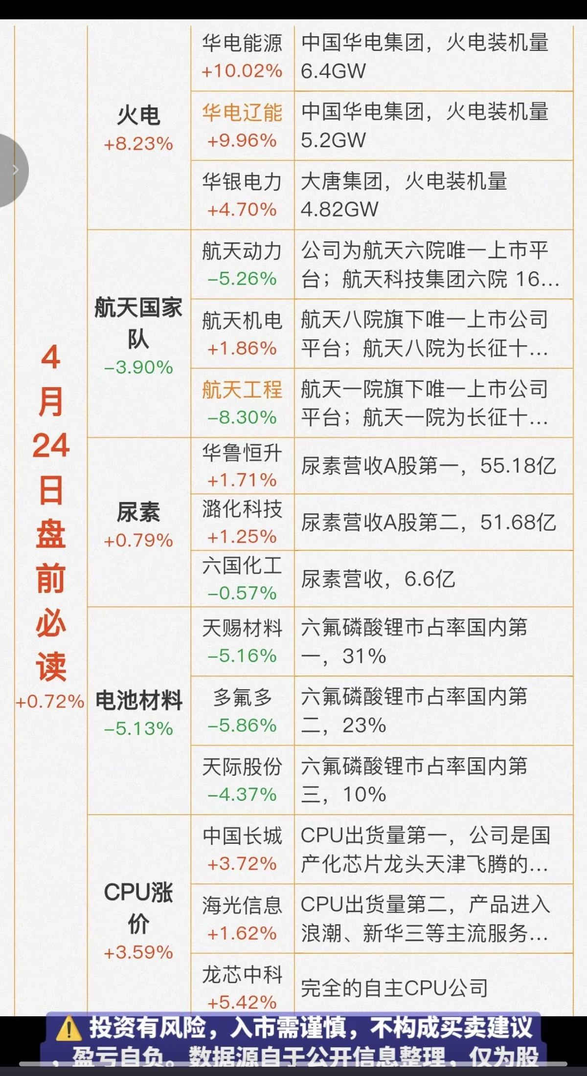 4.24周五 市场新闻+财经热点! 1.燃煤发电,火力发电 2.航天国家队