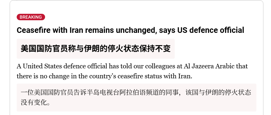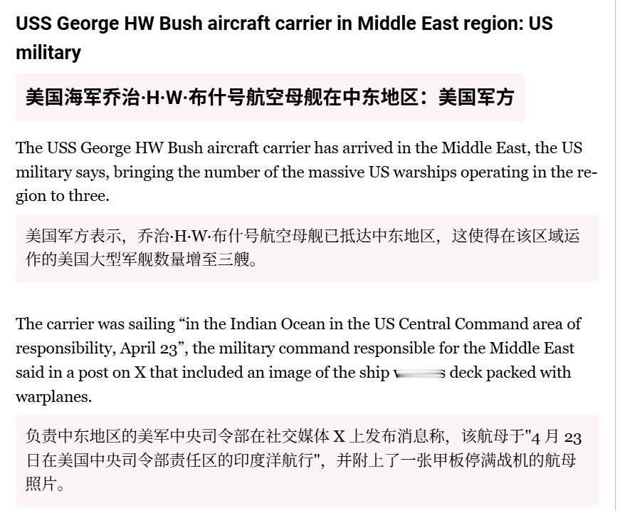 🔻一位美国国防官员告诉半岛电视台阿拉伯语频道的同事,美国与伊朗的停火状态没有变化。🔻美国军方表示,乔治·H·W·布什号航空母舰已抵达中东地区,这使得在该区域运作的美国大型军舰数量增至三艘。特朗普称美完全掌控霍尔木兹 海外新鲜事 中东现场直击 特朗普称下令击沉霍尔木兹布雷船