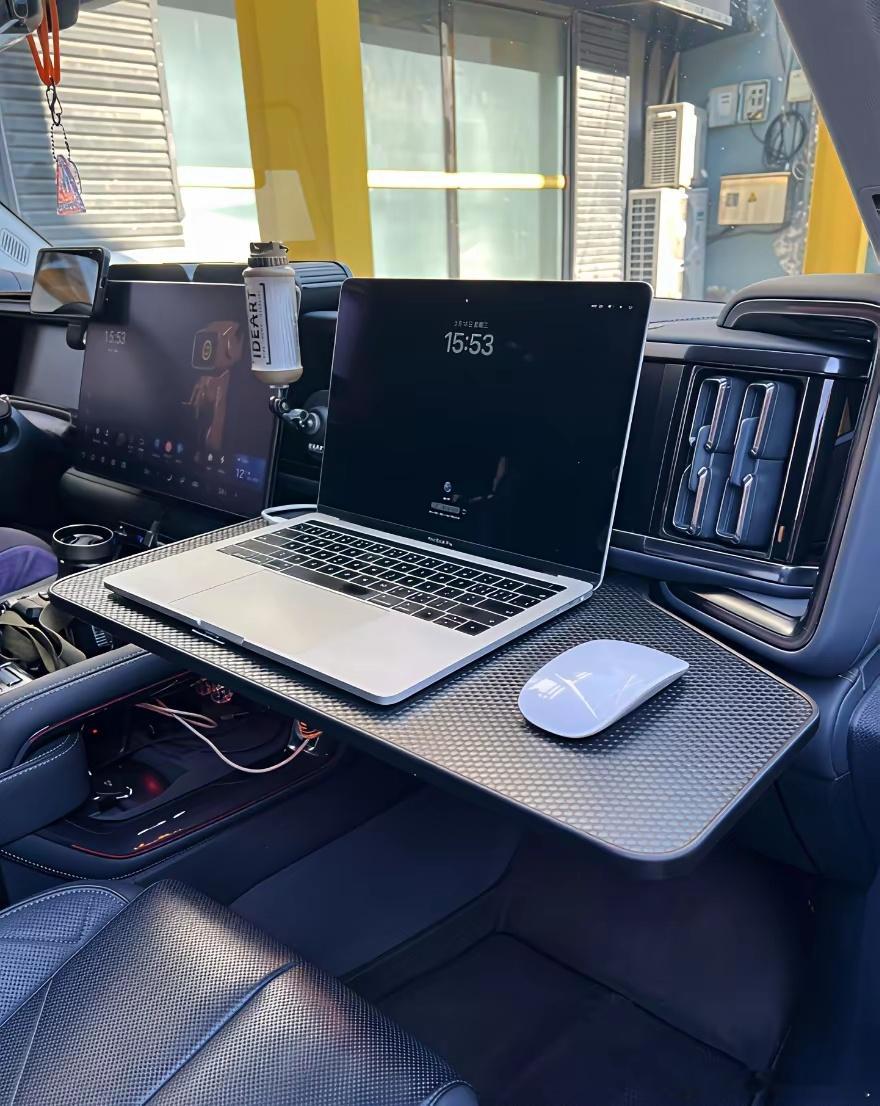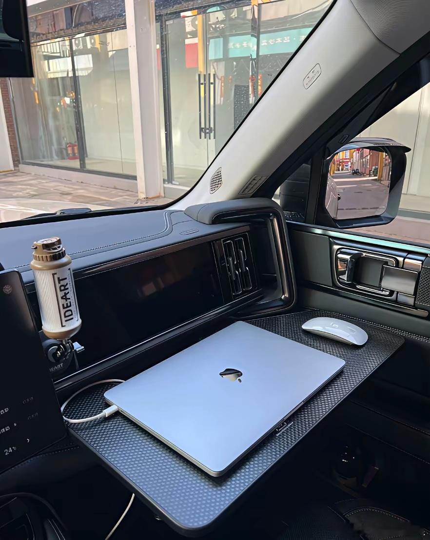 方程豹5的副驾桌板Pro,得有够宽敞的空间,才能稳稳支起这工作台哟!