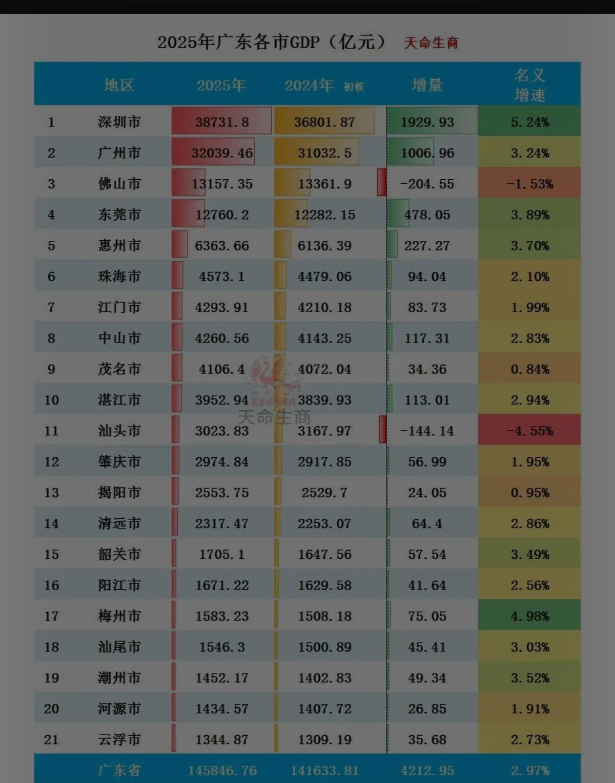 2026年广东第一季度的GDP出炉,总值为34950.34,深圳广州东莞汕尾梅州清远已经公布,暂时还有15地市还未公布。