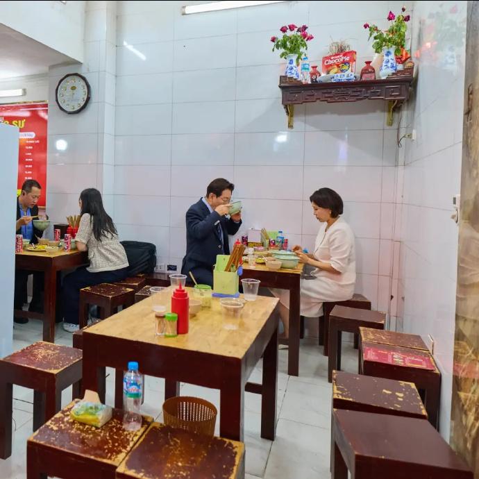 更加接地气的是,李在明也没有去大饭店吃饭,直接在越南街头一个小饭店就餐了,画面中,该饭店的凳子都掉漆了,可是李在明一点也不在乎,关键外面还有很多人给他们拍照,可是李在明和夫人也不管,该吃吃该喝喝,尤其是李在明还端着碗把剩下的汤喝完,真是太松弛太随意了。