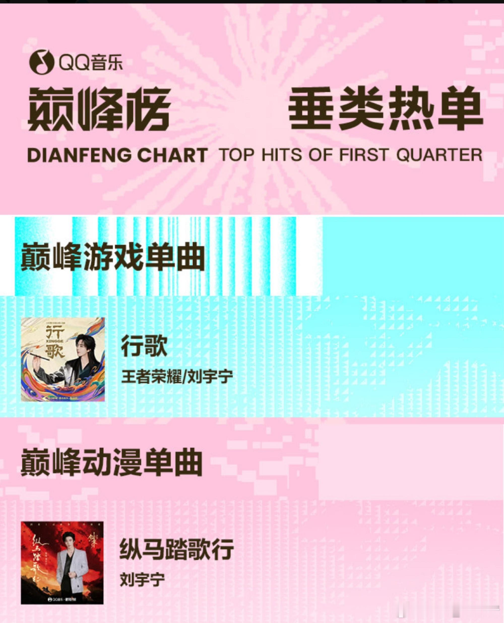 🎉恭喜刘宇宁获得「个人&单曲」4项荣誉🎉获得“QQ音乐巅峰榜十大艺人”🏆单曲《不会太晚》获巅峰潮流榜十大单曲🏆单曲《行歌》获巅峰游戏歌曲🏆单曲《纵马踏歌行》获巅峰动漫单曲🏆