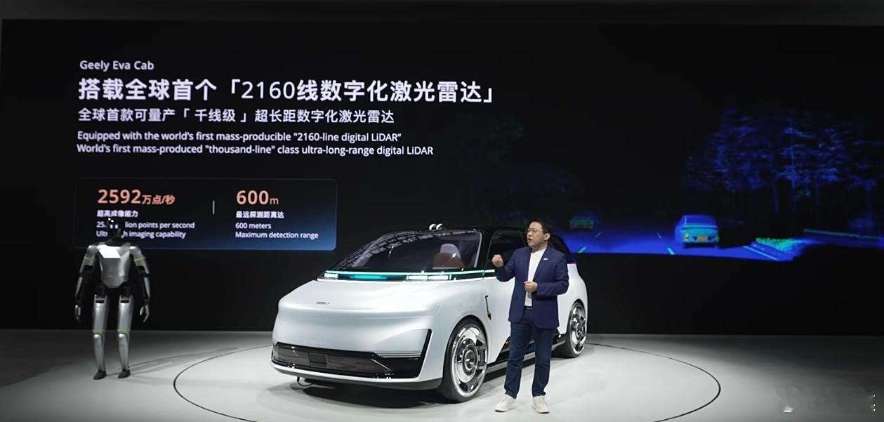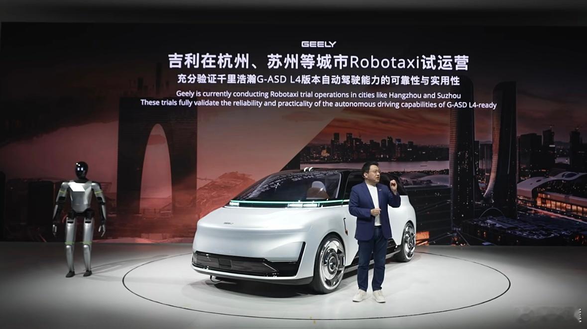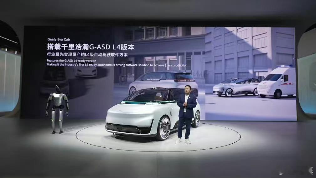 2026北京车展 吉利发布了中国首台原生Robotaxi原型车-Eva Cab,基于原生L4级自动驾驶打造,并非量产车型改装,搭载千里浩瀚G-ASD L4版本自动驾驶解决方案。