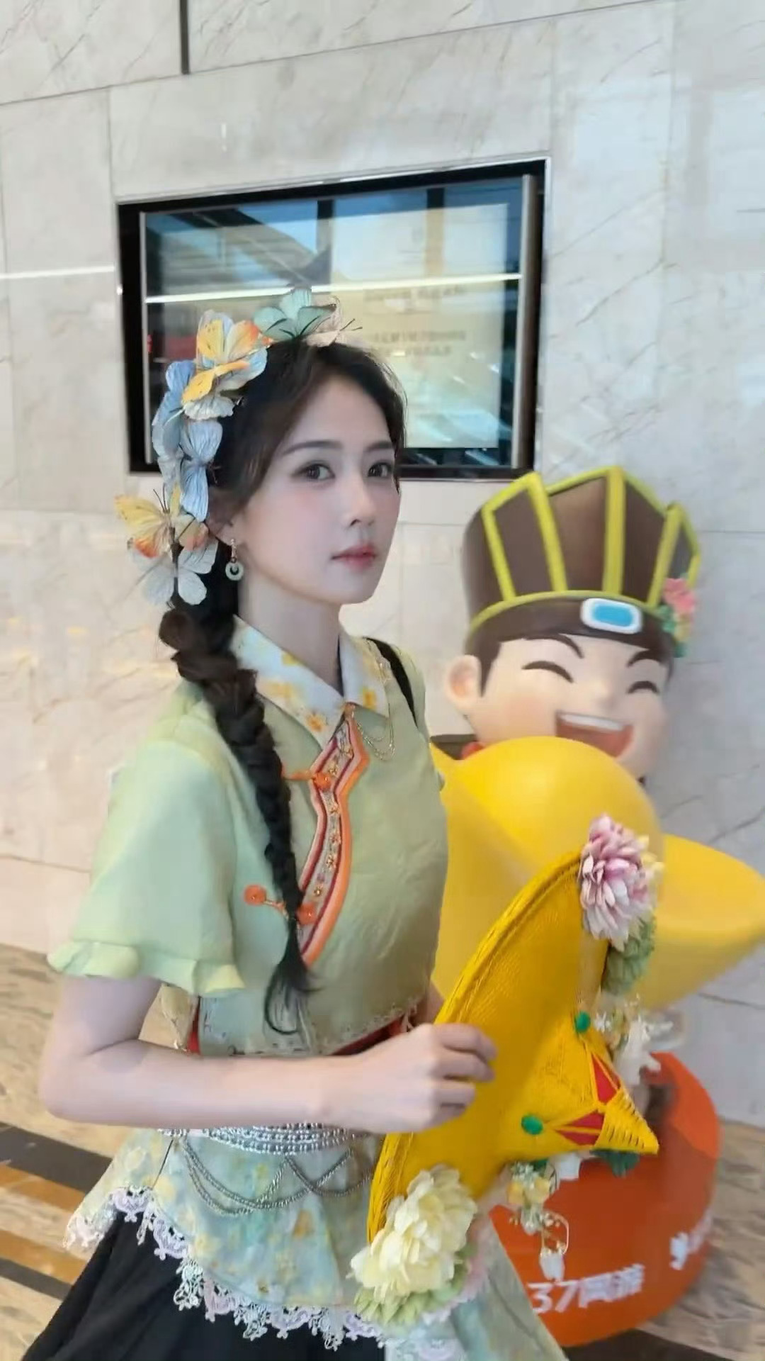 菠萝味花仙子 say hi~🧚♀️ 白鹿蝴蝶花头巾麻花辫造型