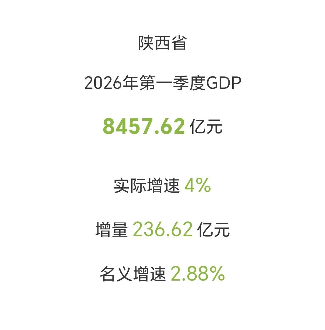 【2026年一季度,陕西省GDP超8400亿元,增量超230亿元】