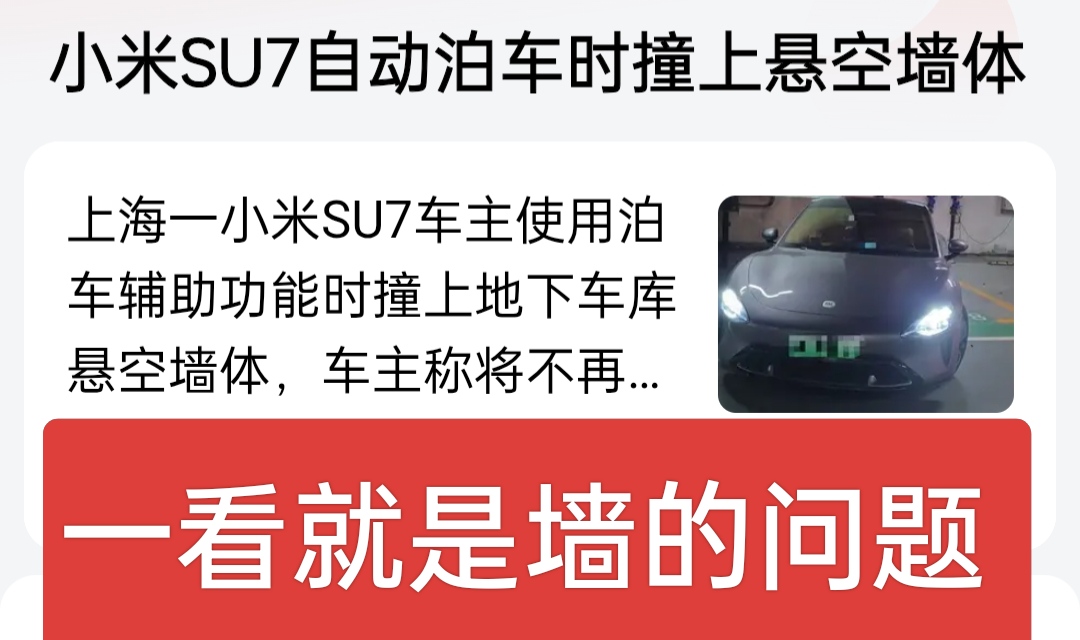 这一看就是墙的问题,和车企的自动泊车技术无关,这事儿刚曝光就引发热议,不少网友调侃“墙不该悬空为难智能车”。