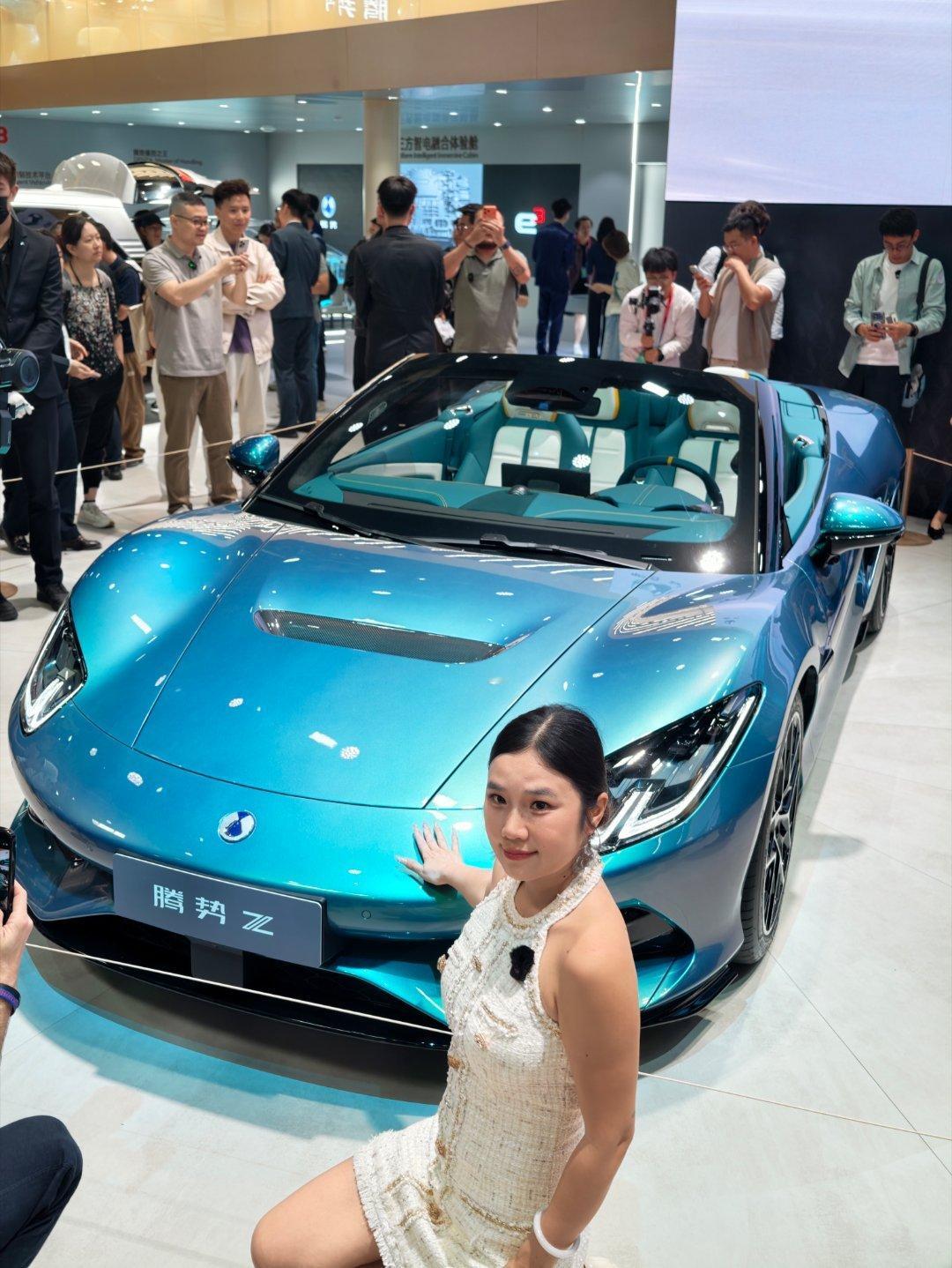 来腾势看看他们的大跑车,敞篷的,看得出来,这是一台主打舒适和生活方式的跑车,它不是竞技型的但我相信腾势的这辆车上有很多关于操控和动力的黑科技,希望有机会能试一试。大v聊车 北京·中国国际展览中心顺义新馆