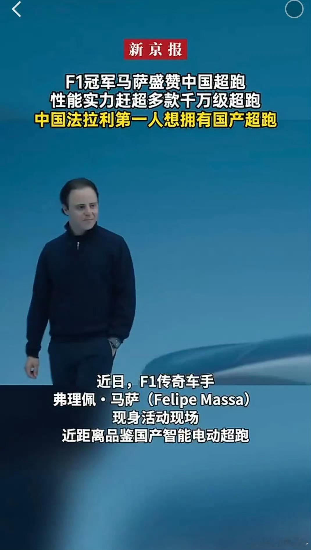 F1冠军马萨盛赞中国超跑中国法拉利第一人想拥有国产超跑传奇见证,实力加冕!F1冠军马萨与中国法拉利第一人李晓华,两大传奇同时为国产超跑站台,千匹动力、2秒破百、全域自研,国产超跑用硬核实力,让世界看见中国超跑力量。
