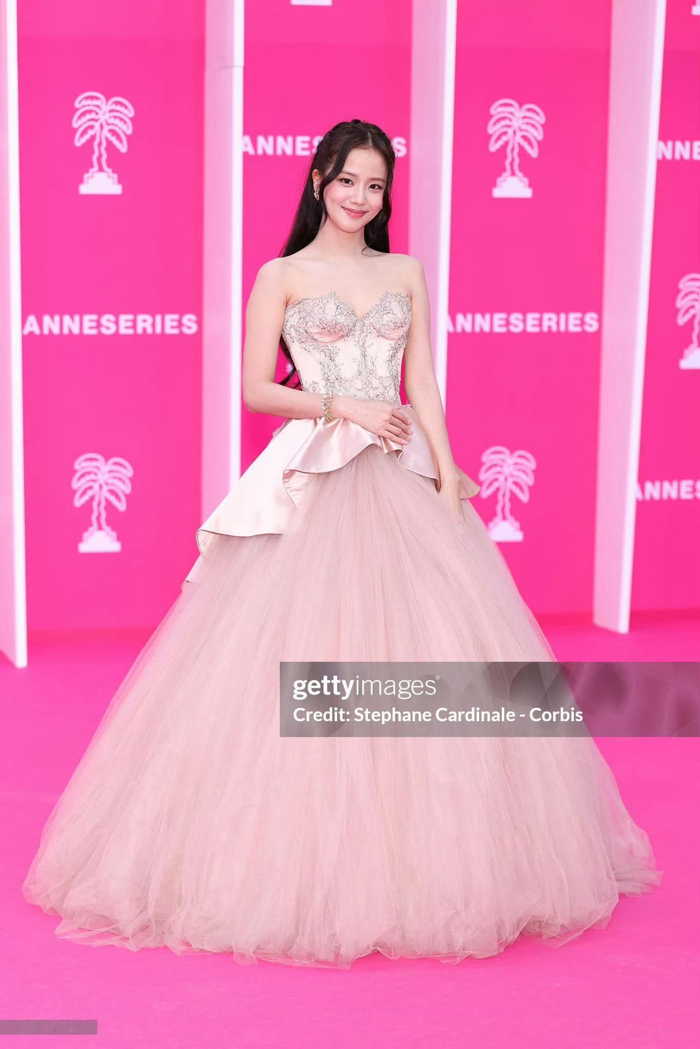 出席戛纳粉毯的金智秀 金智秀获戛纳国际电视剧节新星奖