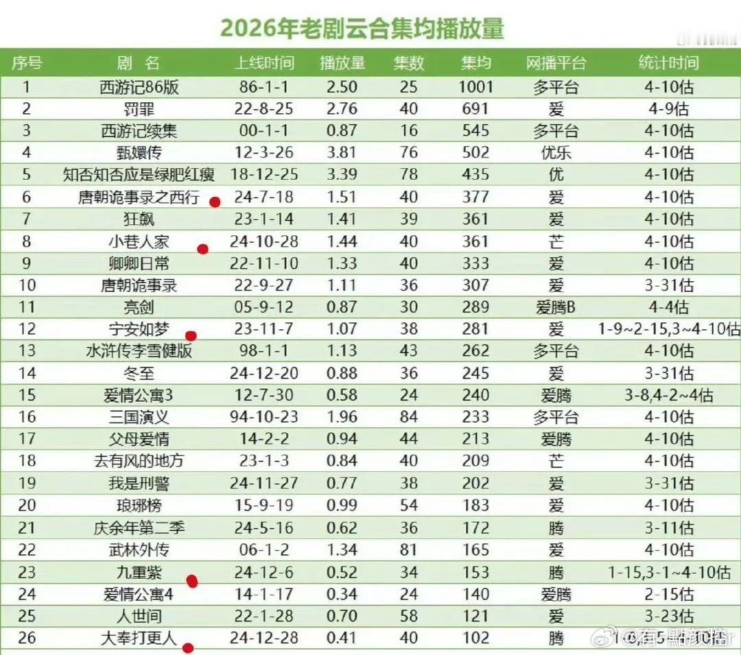 黄景瑜罚罪老剧云合仅次于西游记 《罚罪》2022年播的剧,2026年还能杀到云合老剧榜第二,仅次于《西游记》。不是新剧重播,是老剧自己又火了一遍。剧播完四年还能带飞,这续航能力太夸张了。