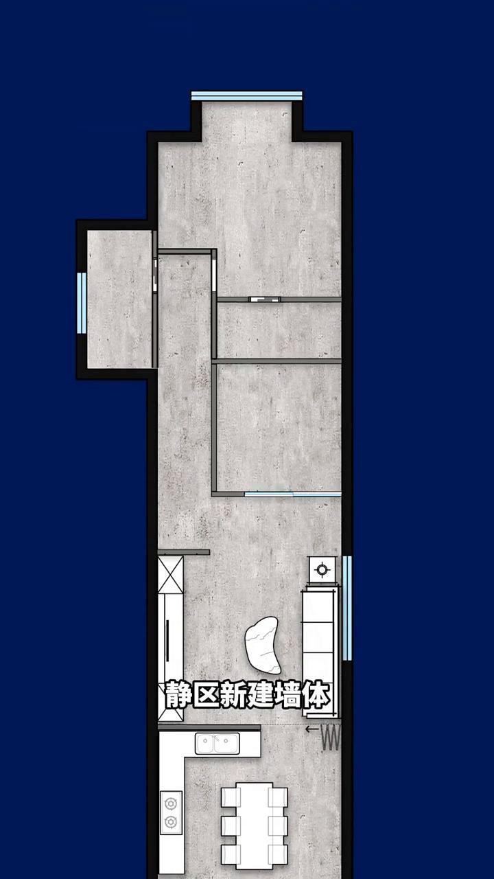 ·首先拆除房屋内的墙体,重新规划空间,划分动区和静区。客餐橱在动区,三口之家至少需要两间卧室设在静区。