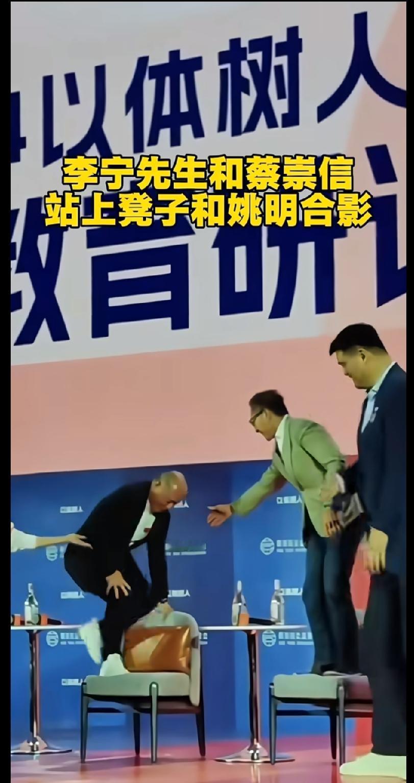 - 就连李宁、蔡崇信都得踩上凳子,才勉强能和他“平视”合影。
