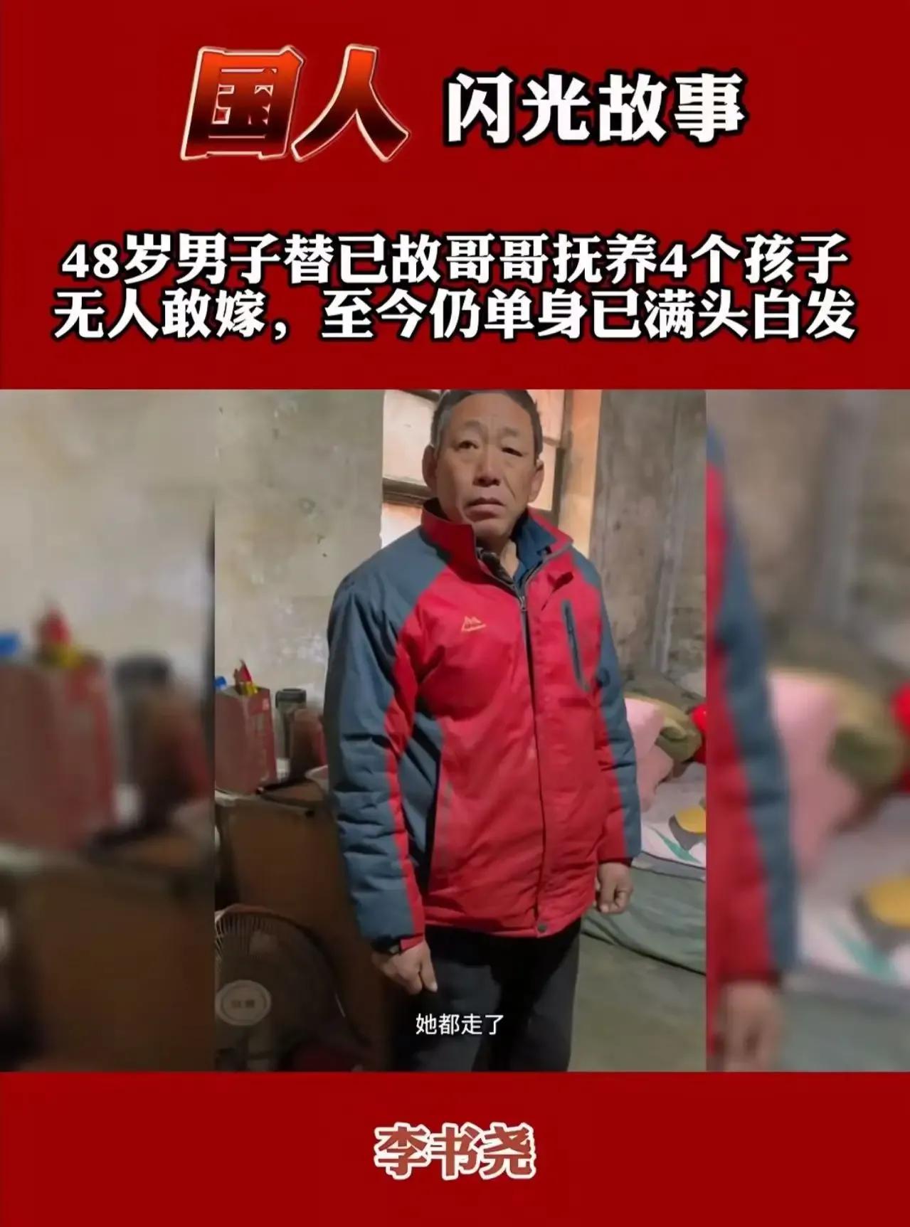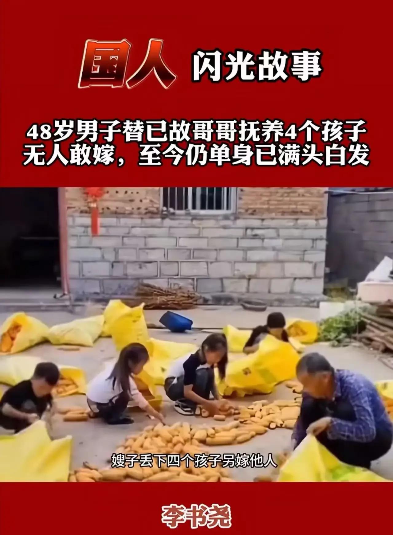 原来,这位河北农民在弥留之际,最放心不下的就是自己的妻子和4个孩子。他深知自己走后,妻子一人难以支撑这个家,于是便将重任交给了自己的光棍弟弟。弟弟含泪答应,决心要替哥哥照顾好这个家。然而,令人意想不到的是,哥哥的丧事刚办完,嫂嫂就突然消失了,连个招呼都没打。这一举动引起了网友们的热议,大家纷纷表示:“孩子亲妈干的事儿,还不如一个没血缘关系的叔叔硬气。”是啊,这位叔叔在38岁到48岁这人生最好的十年里,没有选择自己的幸福,而是将全部精力都投入到了哥哥的孩子身上。他用自己的行动诠释了什么是真正的责任和担当,这才是中国好叔叔,这才是真正的爷们!