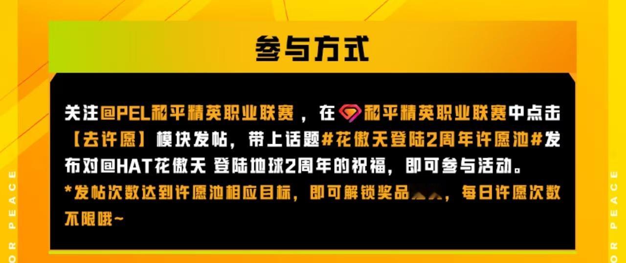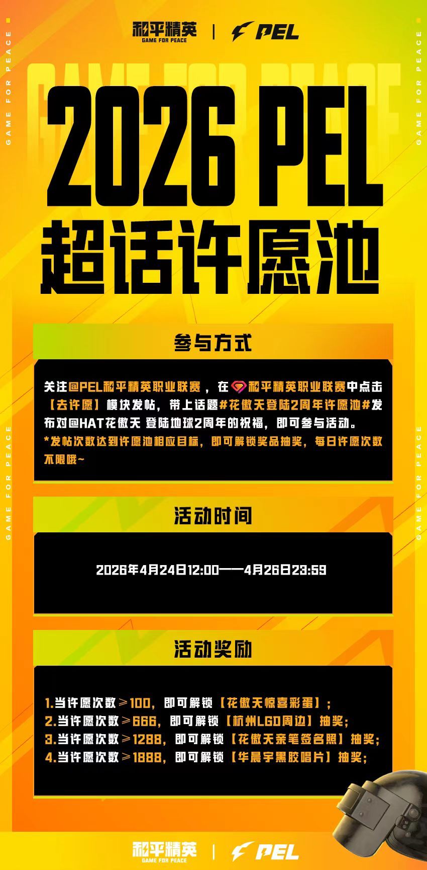 花傲天登陆2周年许愿池2026PEL春决今日开赛 登陆地球两周年圆满抵达,电竞少