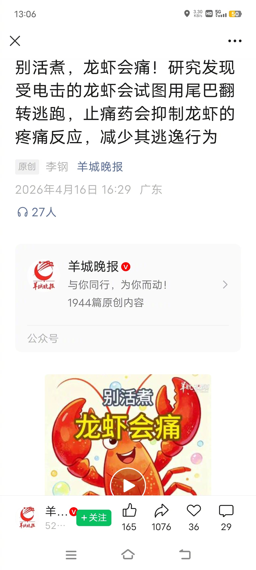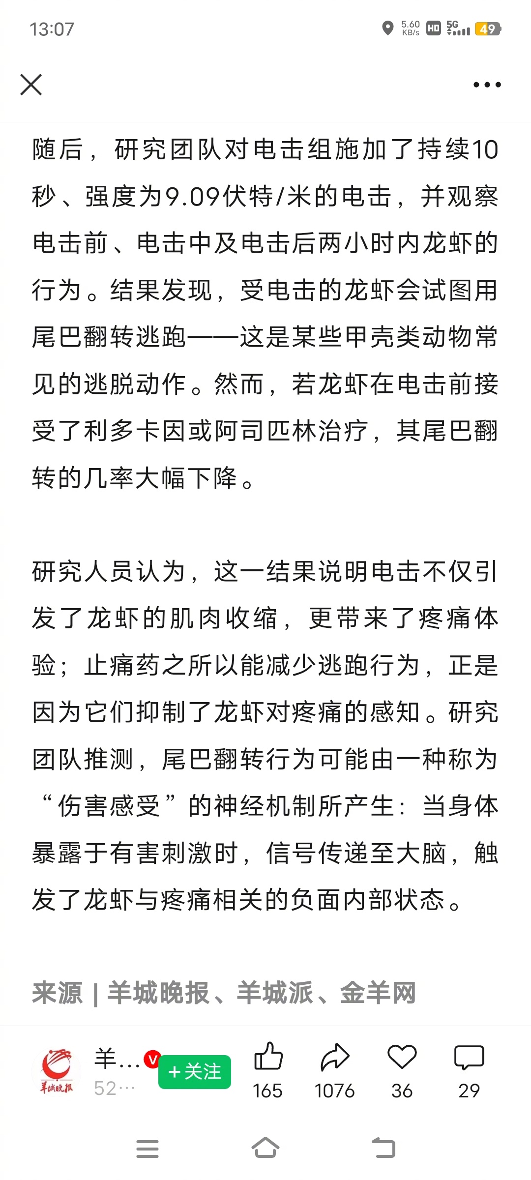 别活煮,龙虾会痛!研究发现受电击的龙虾会试图用尾巴翻转逃跑,止痛药会抑制龙虾的疼
