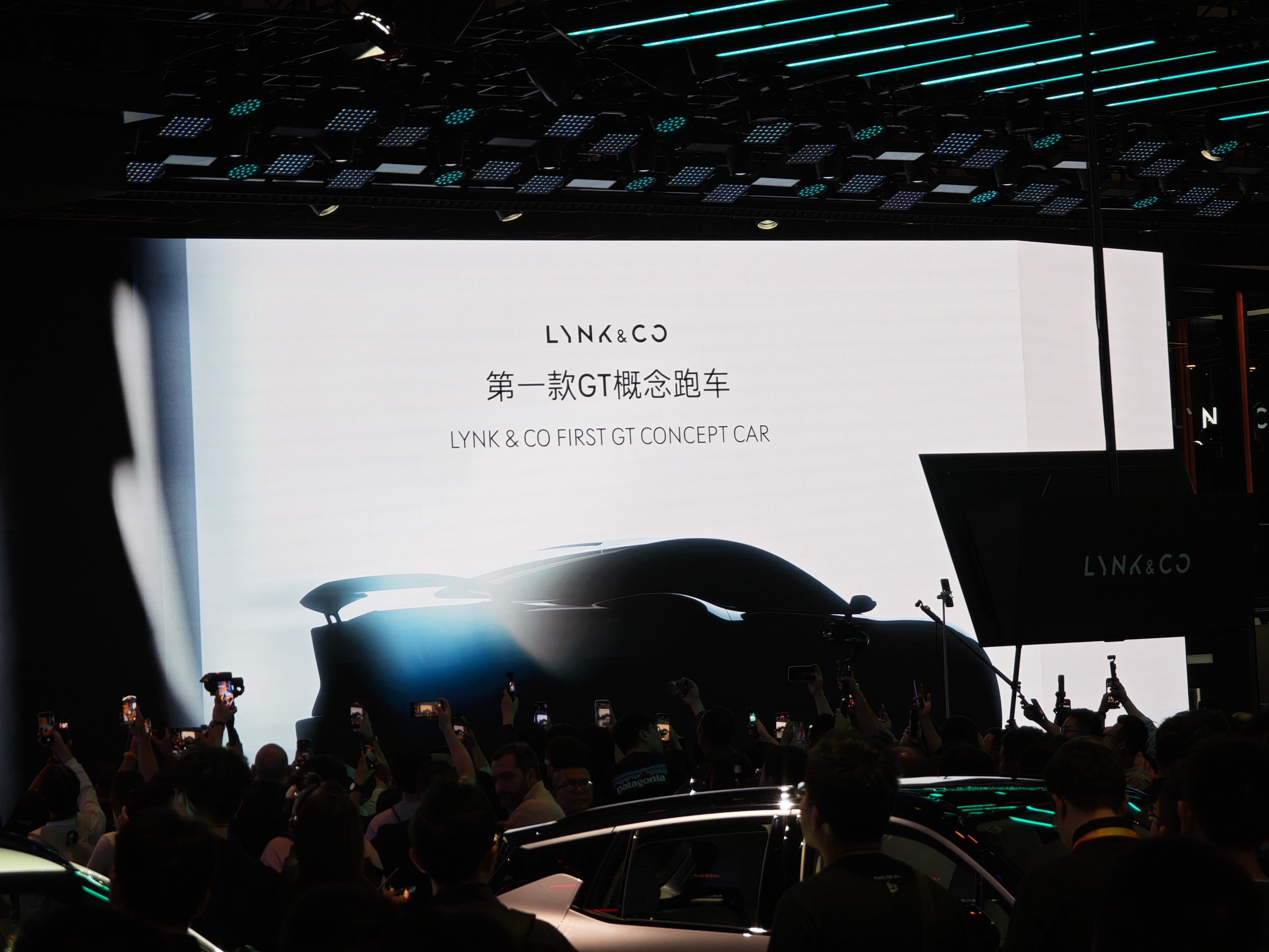 领克GT概念跑车也全球首发。双门纯电GT,流畅曲面配自动升降尾翼——十年领克,性能献礼。