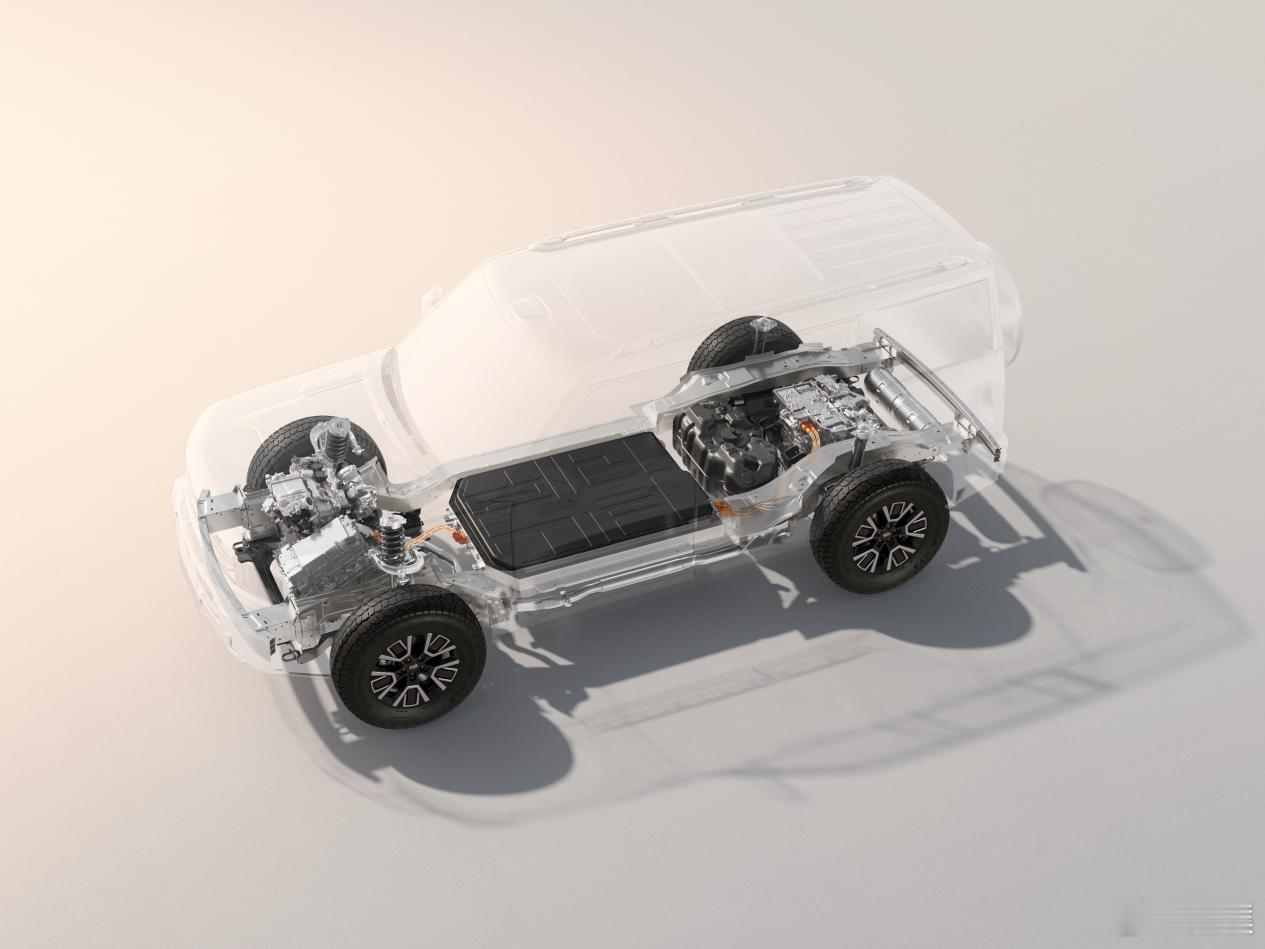 首款原生新能源越野架构:搭载前大功率P3电机、后双P4轮边独立电机,综合功率超过1000匹,零百加速4秒级,三电机配合整车感知系统,实现轮端扭矩AI智能分配,后差速锁可快速智能锁止后双电机。银河之光第二代概念车全球首发你好吉利小撒报到