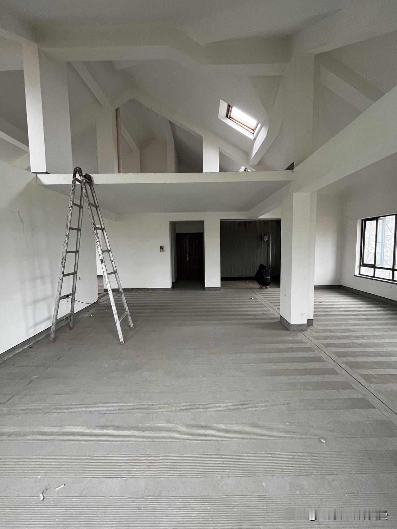 作为设计师,第一次看到这个带斜顶+天窗的毛坯时,就暗下决心:绝对不封楼板!挑高就是它的灵魂!