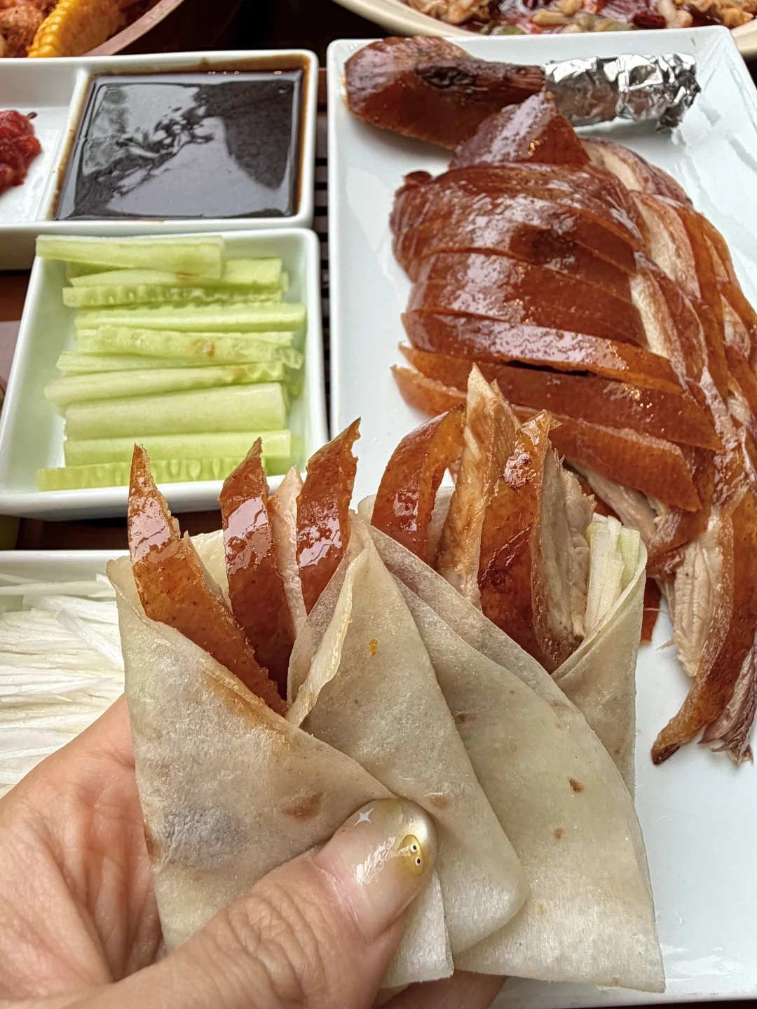 他家人均都不到50,不仅环境绝了,主打的湘菜味道也没话说!有火炉现烤的烤鸭……还有榨辣椒炒罗氏虾、酸汤跳跳蛙都好好吃啊!还有饭后甜点柿柿拉丝包…我们都抢着吃,趁热还会拉丝,吃完还打包走了两份!尊嘟好爱