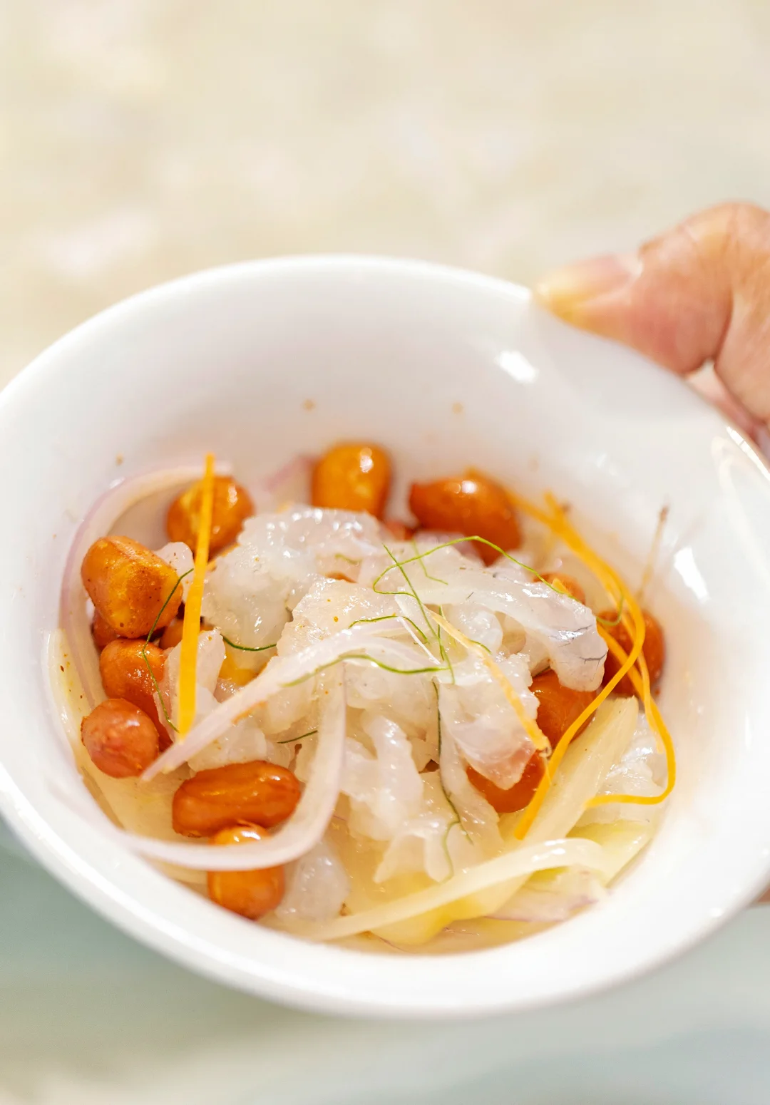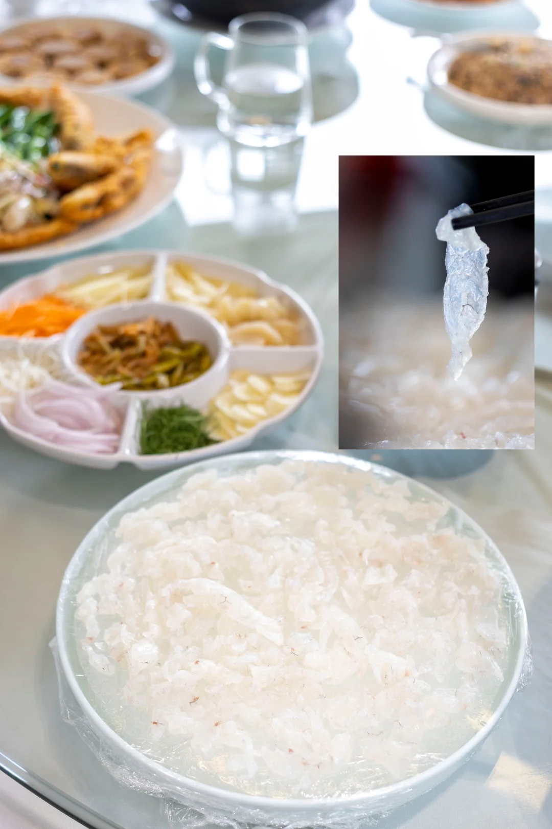 顺德必点菜式之一:每天新鲜挑选的黑立鱼,现切鱼肉薄如蝉翼,晶莹剔透,搭配鱼生佐料,捞得风生水起。