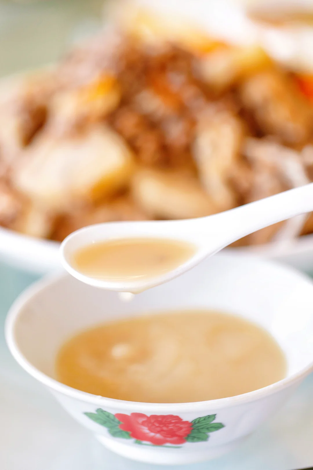 顺德是老火汤的代表,慢炖3小时,汤色熬得像凝脂一样奶白,粉葛炖得软乎乎的咬开全是甜味,河蚌肉处理得干净,一点腥气都没有,眉豆都炖得起沙了,一碗下去胃里暖乎乎的。