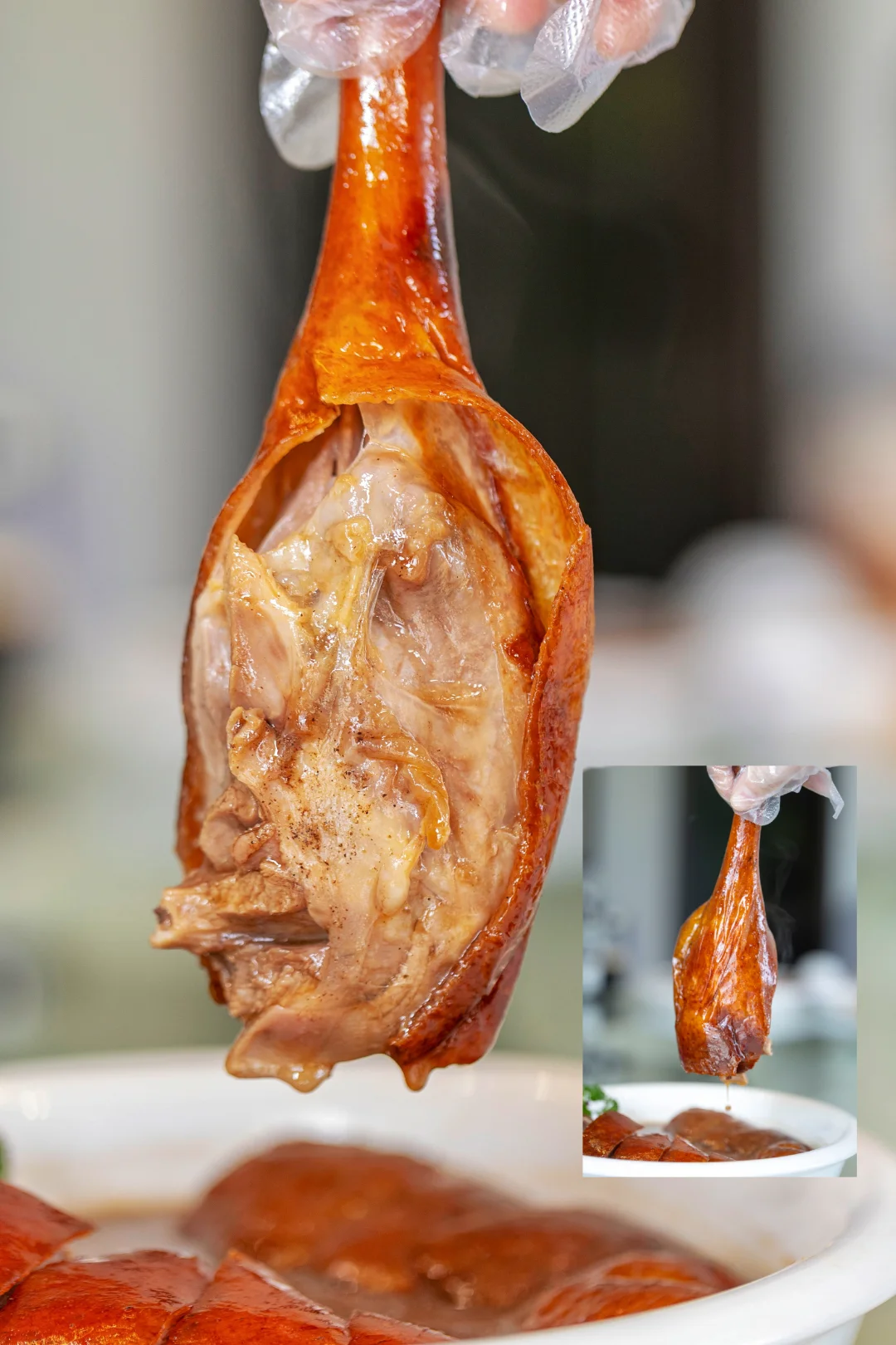 选的都是足足8.5斤重的江门马岗鹅,木明炉慢烤,烤完表皮油亮得裹着一层琥珀光,油脂在舌尖瞬间化开却完全不腻,鹅肉嫩得还锁着汁,一口下去非常满足了(๑¯∀¯๑)。