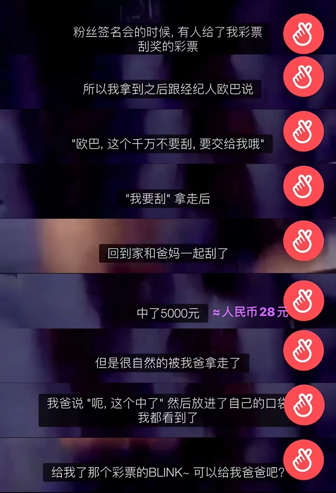 多子女的家庭父母有时候是会做的不好不周全,但是jisoo也不是不被爱着长大。不要太过于咯噔说她原生家庭有多坏了,不要觉得她不在镜头前哭就是家族环境导致那么冷漠。她也是被爸爸妈妈爷爷奶奶爱着的,所以才长成这么美好并善于表达爱意的jisoo[哭惹R]骂金正勋一个人就好,不要骂父母了,jisoo也不希望 ,jisoo也大大方方表达过对父母的爱意,分享和爸爸妈妈在一起的瞬间,希望以后,金智秀也一直幸福,坏人就地正法,不要再危害社会,连累家人了[微笑R]