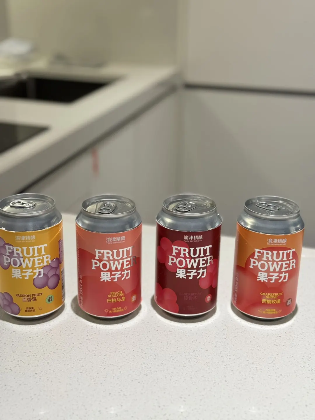 一共有 4种神仙风味:百香果、西柚玫瑰、接骨木花、白桃乌龙,每一口都清新多汁,完全没有工业啤酒的苦涩。