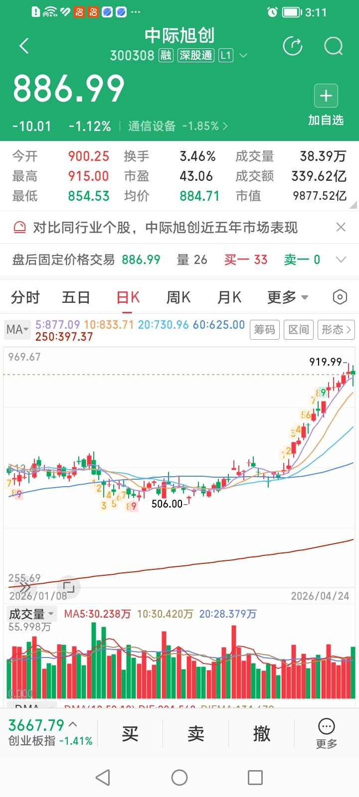 中际旭创今天开盘有过一波冲高翻红行情,似乎显示自个业绩好,底气足,卓尔不凡的个人英雄主义气概,结果收盘也扛不住收跌了。不要幻想中际旭创不一样了,雪崩时没有那一片雪花是无辜的。