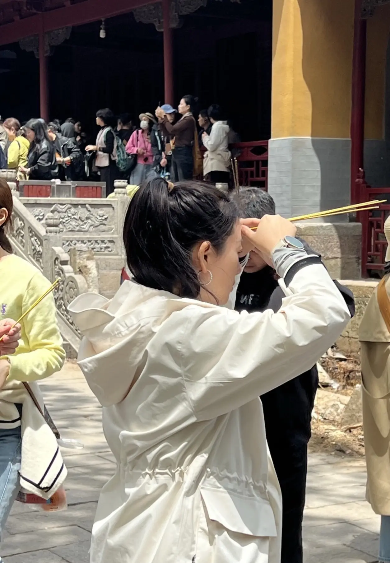 经超小李琳夫妻俩普陀山祈福被偶遇。网友走普陀山偶遇经超小李琳夫妻俩,称...