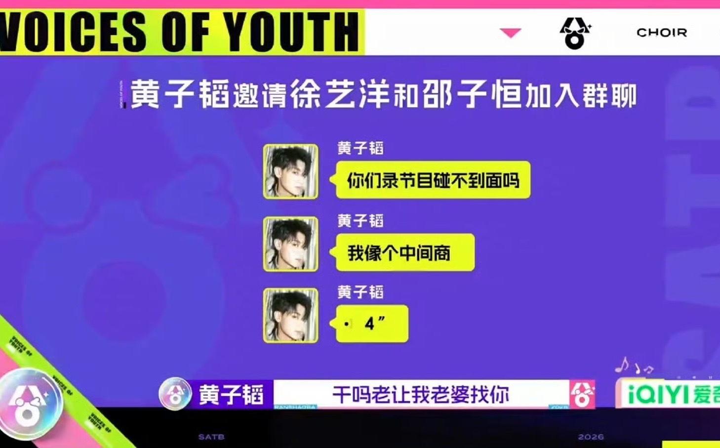 黄子韬说邵子恒干嘛老让我老婆找你黄子韬不用说了,全世界都知道徐艺洋是你的老婆,都是你的