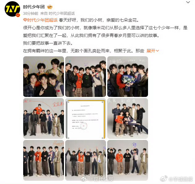 【#时团宣布长期认养七朵金花#】4月24日,发布长文,晒出地坛公园树木认养声明,宣布长期认养七朵金花,全体成员还拍摄“金花”合照,复刻早期合照姿势。“春天好呀,我们的小树,亲爱的七朵金花。很开心是你成为了我们的小树,就像爆米花们从那么多人里选择了这七个少年一样。”“我们已经跟地坛达成了关于‘七朵金花’的长期认养,这一次我们不用再与时间赛跑,你任何时候去它都会在那里。”(现代快报)更多消息:#黄旭熙 可以爆料了吗##傅首尔怎么了##冰湖重生算扑吗##曝留几手想复婚##宋祖儿 贝微微##泫雅近照曝光面部浮肿#(编辑:惠天骄;审签:谢杨柳)