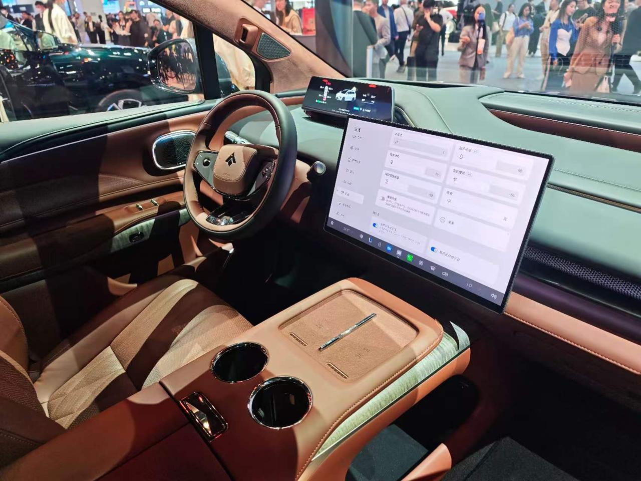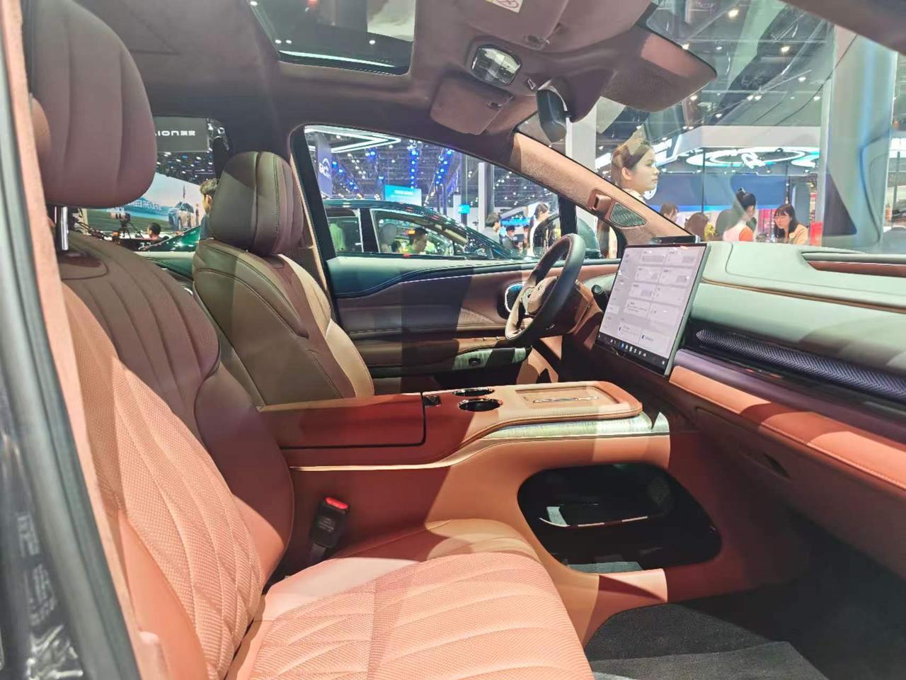 昊铂A800堪称全场焦点,作为昊铂品牌向上的扛鼎之作,搭载华为乾崑ADS 4.1智驾+鸿蒙座舱5.0,双智王牌加持;外观搭载全球首创三面翻转大灯与超长星环灯带,辨识度拉满;内饰环抱式星际座舱,软质包覆,可以看出很有质感细节;综合续航超1200km,亏电油耗低至5.74L,堪称30万级豪华轿车“六边形战士”。