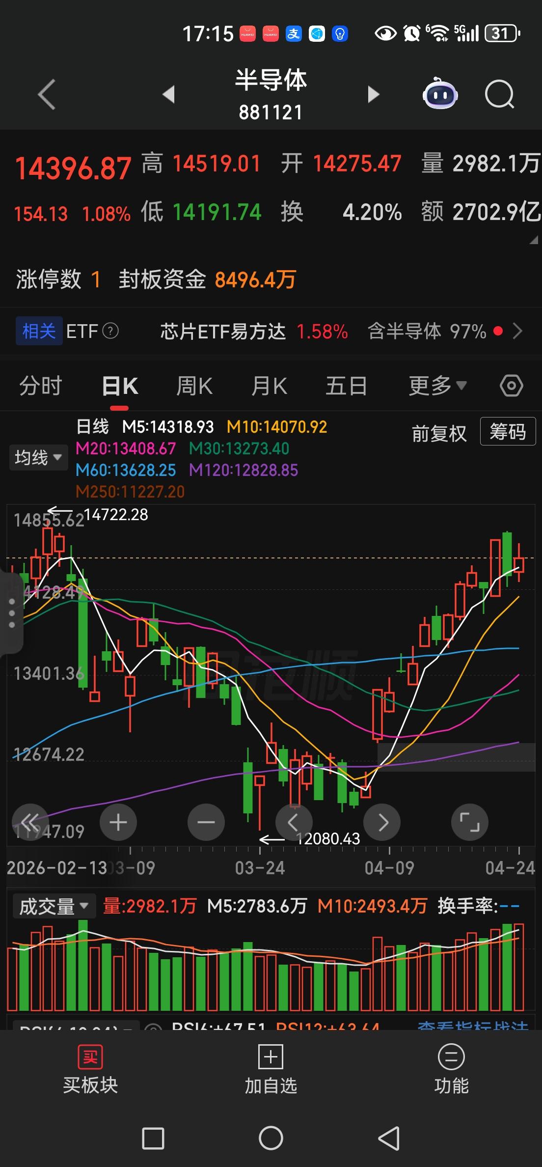 国内A股半导体走得就有点猥琐了,缩手缩脚没放开。