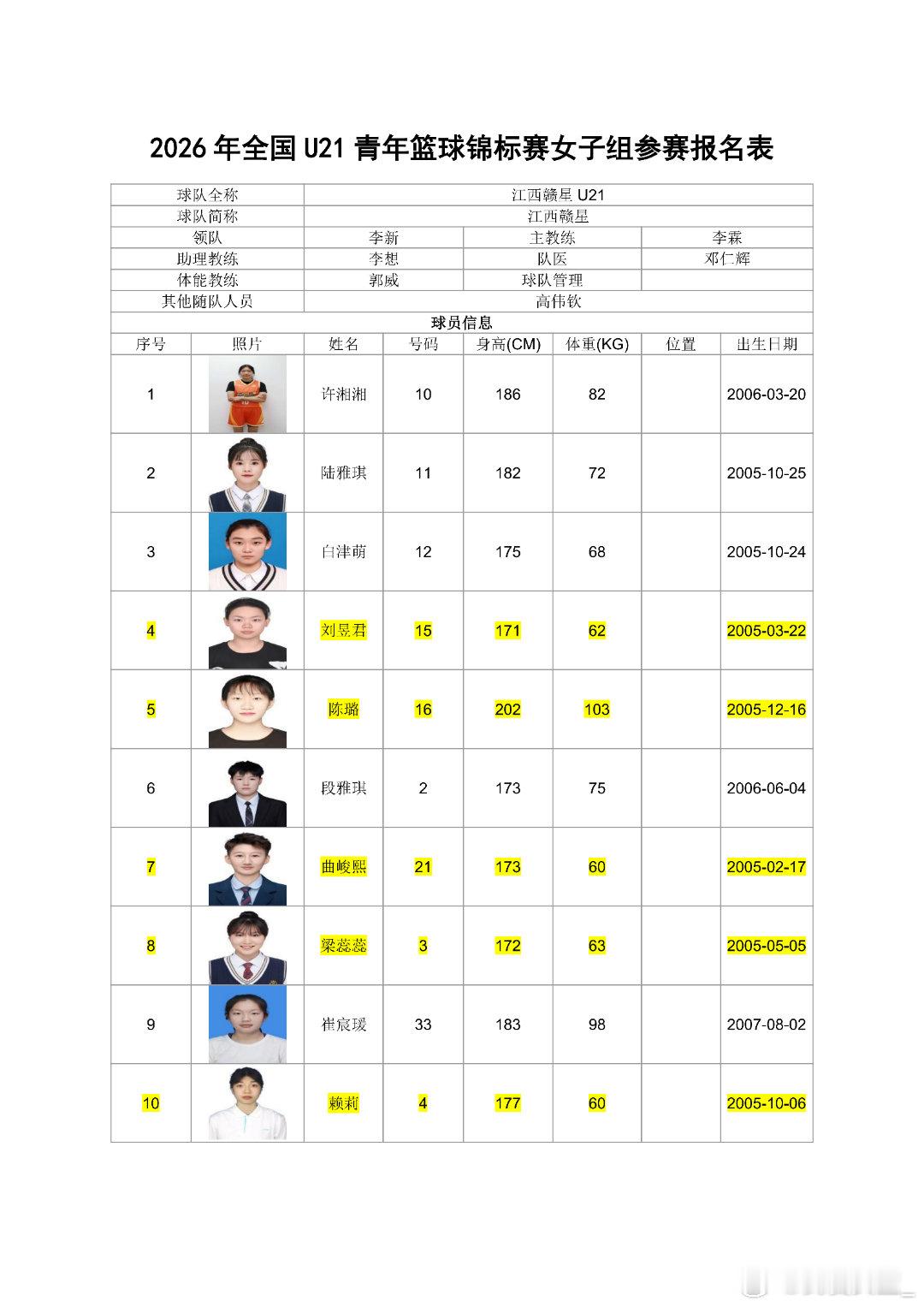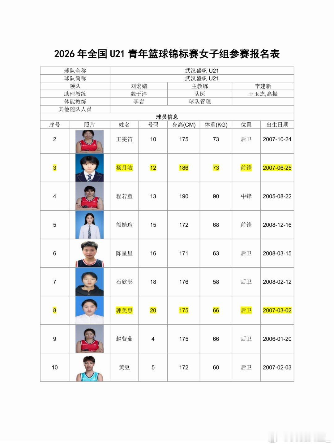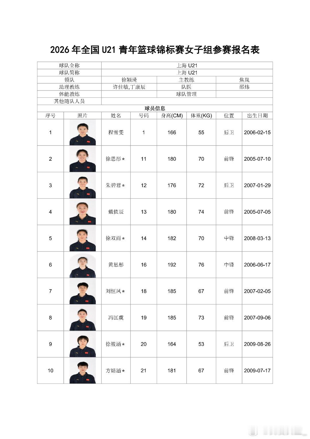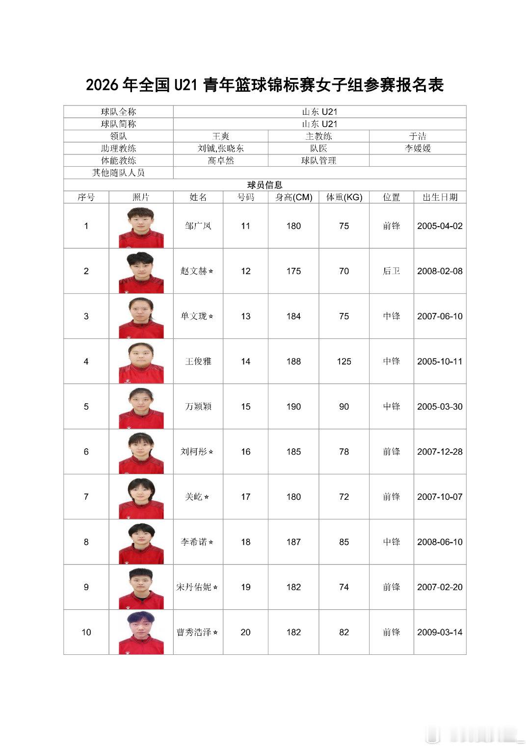 【全国U21女篮锦标赛名单出炉,广东派出银河战舰】今日,2026年全国U21青年篮球锦标赛女子组参赛名单正式出炉,参赛队伍包括职业俱乐部和省队,众多职业女篮新星与曾经的校园篮球精英汇聚一堂。比赛将于2026年5月4日至9日在四川简阳和山东青岛两地同时开赛,各赛区五支球队进行组内单循环,决出赛区排名后,全部球队都将晋级淘汰赛和决赛阶段。 【四川简阳赛区】 放眼两个赛区全部10支队伍,广东队的阵容无疑最为豪华。由黄思静挂帅,杨力维担任助理教练,13人名单中有12人已进入WCBA联赛,其中包括进入了国家集训队的张明珠。同组的北京队由徐凤威、豆中秋领衔,福建队由郑馨茹、李彤率领,各队都有一定竞争力。 【山东青岛赛区】 青岛赛区实力最强的当属东道主山东队,邹广凤、王俊雅、万颖颖、张婧无论在全国女篮锦标赛还是WCBA赛场都曾有过亮眼表现。武汉盛帆队由赵紫茹、程若童、黄豆等WCBA球员领衔,新疆队拥有热苏拉、张晨香等实力球员。上海队拥有前耐高明星前锋纪松辰。江西队的许湘湘、陆雅琪等球员也已在职业赛场得到充分锻炼。