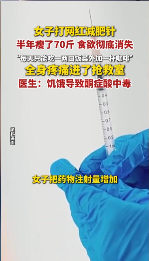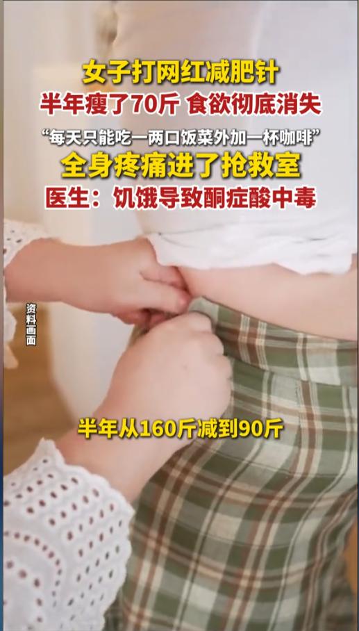 信息来源:《女子打网红减肥针,半年瘦了70斤,食欲彻底消失,全身疼痛进了抢救室:饥饿导致酮症酸中毒.》纵览新闻