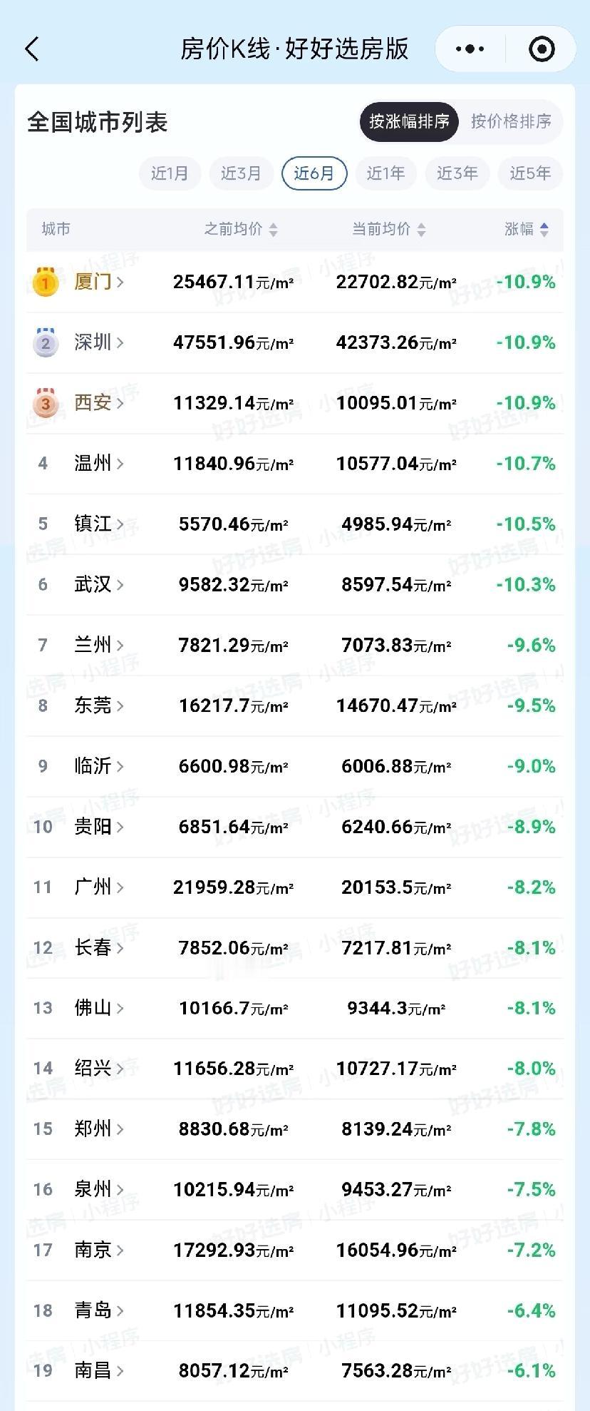 近6月房价涨跌榜出炉,上海领涨8%挺显眼,厦门、深圳、西安却跌得猛,直接掉了10