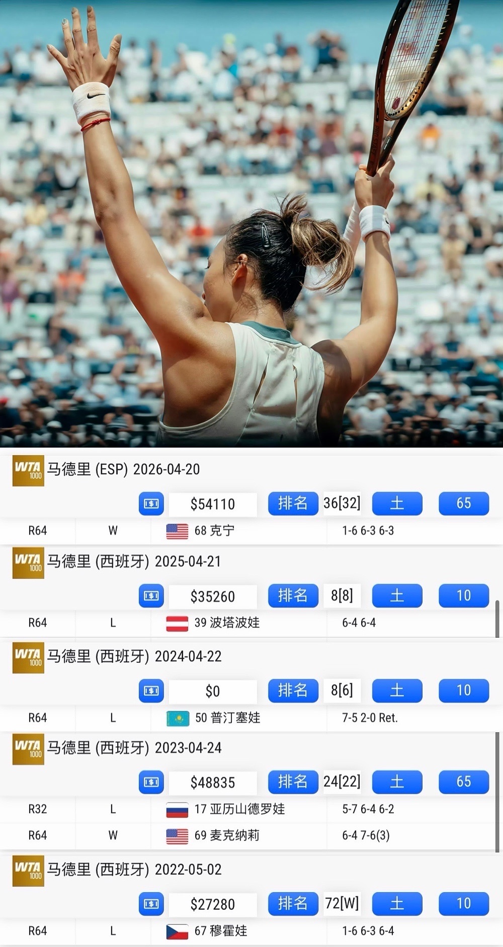 郑钦文取得马德里第二场胜利✌️不要觉得奇怪,从2022年开始参加马德里赛,郑钦文算上今天只赢了两场比赛~