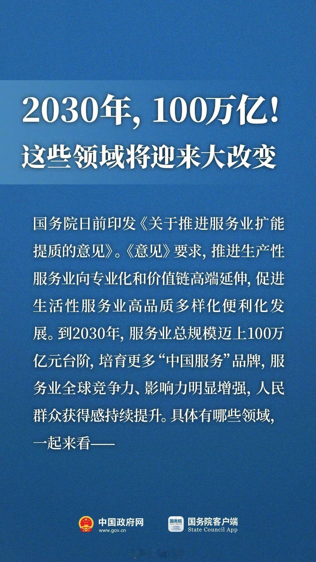 【瞄准2030年!服务业这些领域将迎大改变】国务院日前印发《关于推进服务业扩能提