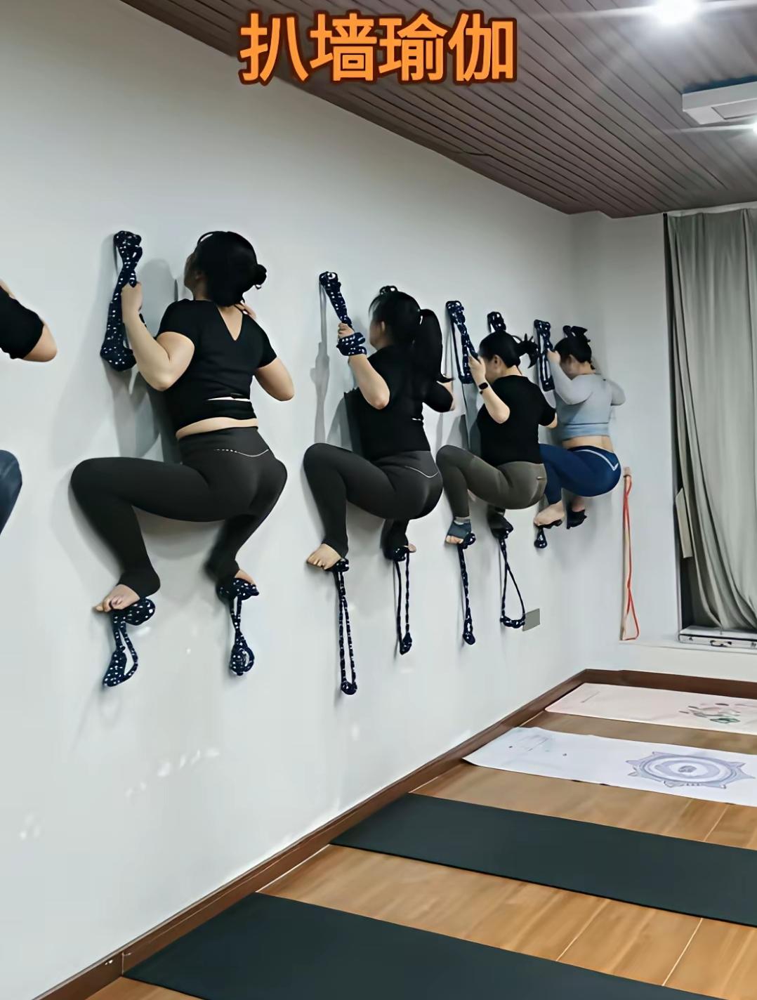 你看瑜伽馆,都开展这样的训练科目了,叫扒墙瑜伽。听起来是挺古怪的,就是让学员在墙